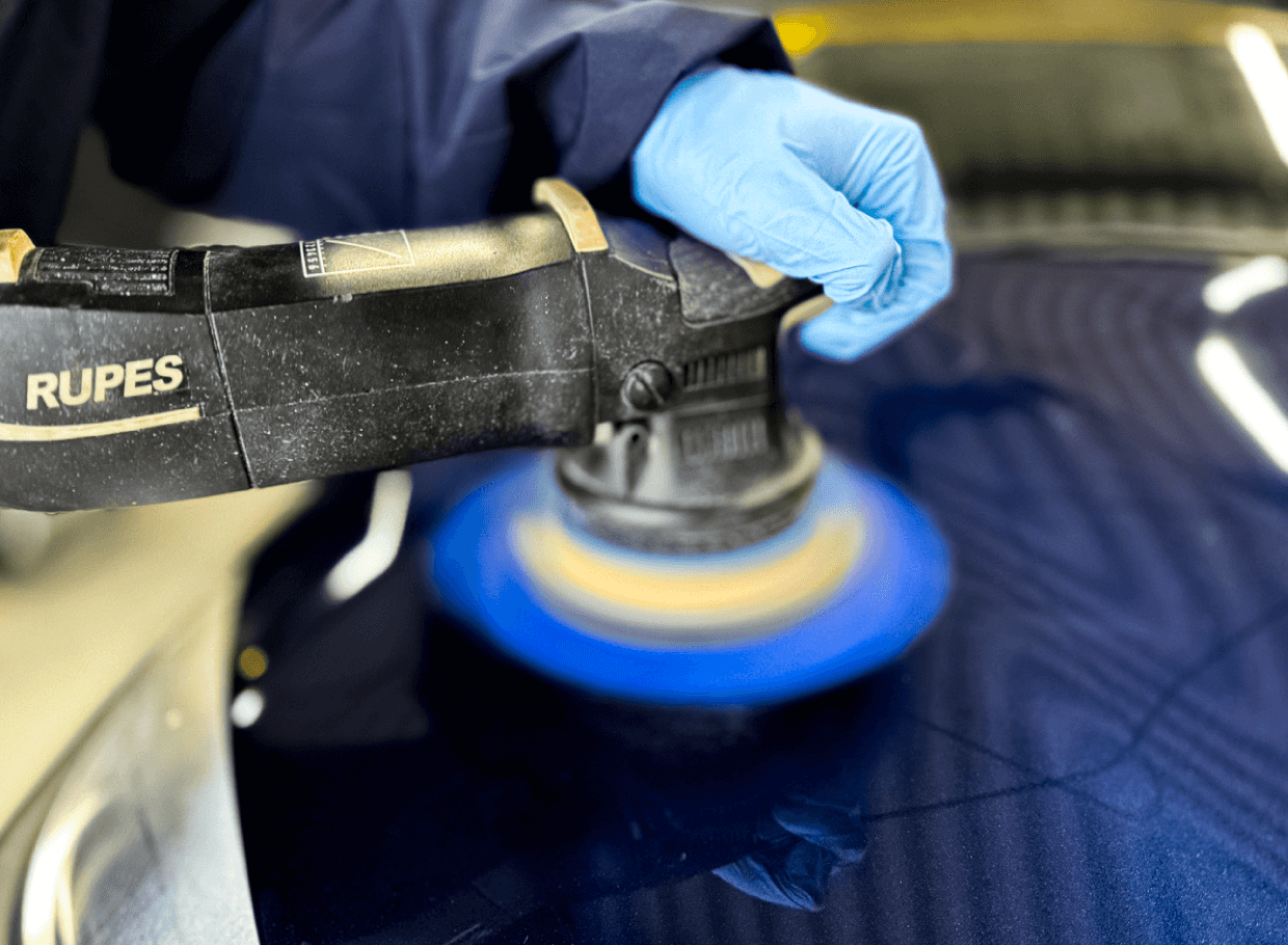 コーティングは下地処理が命だと考えます。手間を惜しまない下地処理として照明は特に重要です。照明の当たり具合でボディの状況を逐一把握しながら研磨作業を進めていきます。研磨する場所、色などでポリッシャーの種類を変える必要が出てきますので、複数種ご用意しております。ホイールにコーティングを施工すれば、ブレーキダストからホイールを守ることもできます。車種によってはブレーキダストでホイールが真っ黒になってしまうこともあると思います。このダストを放っておくとこびり付き、なかなか取れなくなってしまいます。おしゃれは足元からとも言います。ホイールも大事にしたいポイントの一つですね。